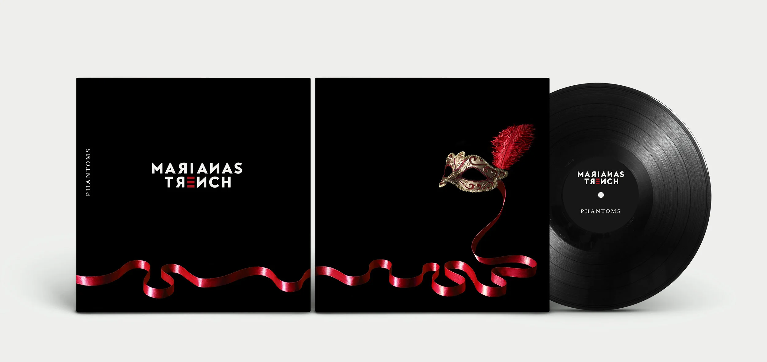 For my final assignment at AU Arts, I was challenged with designing the front and back album cover inspired by a song of my choice. Choosing Marianas Trench, a favourite band since 2009, was a natural starting point. While developing the project, I had the chance to see them live on their Suspending Gravity tour, supporting their new album, Phantoms. The tour’s theatrical aesthetic featured haunting themes, masquerade imagery, and elaborate stage design deeply influencing my creative direction. Experiencing the performance firsthand brought the emotion and atmosphere of their music to life, giving me the inspiration I needed to create a visual piece that reflected the album’s mood and storytelling.